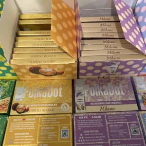 Unlock cosmic journeys with Polkadot chocolate bars – gourmet Belgian chocolate infused with potent psilocybin mushrooms for smooth, flavorful highs. Pre-scored into 15 equal squares (250mg psilocybin each), these bars deliver precise dosing from micro (1-2 pieces) to full trips (8-15 pieces). UK fans rave about flavors like Milk Chocolate, Dark Chocolate, Caramel Peanut Swirl, and Red Velvet that perfectly mask earthy notes.