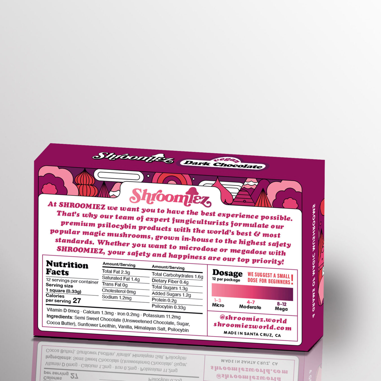 This magic mushroom infused chocolate bar is guilt-free with dark chocolate and zero dairy, but don’t let that fool you, it’s still delicious. Nibble on a few squares to microdose, or keep going for a fun trip! Your experience is up to you, with Shroomiez you can rest assured that you’re consuming a reliable dose of the best magic mushrooms.